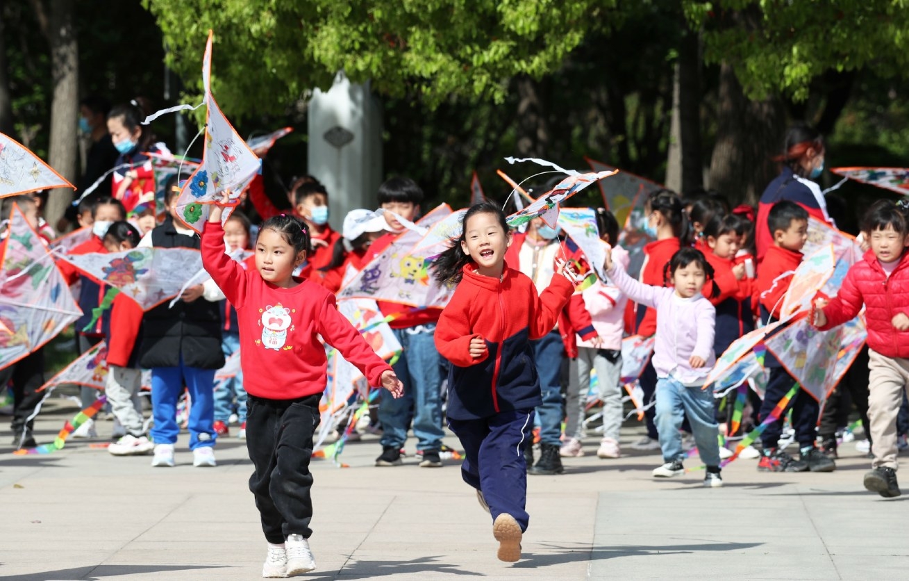 4月17日,由許昌市體育局主辦的“向中國共產(chǎn)黨成立100周年獻(xiàn)禮”風(fēng)箏彩繪放飛活動(dòng)在許都公園舉行,部分風(fēng)箏愛好者和兒童一起繪制風(fēng)箏,并舉行放飛活動(dòng),以寓教于樂的方式激發(fā)群眾熱愛黨、熱愛祖國、熱愛社會(huì)主義的感情。圖為小朋友在放飛自己制作的彩繪風(fēng)箏。