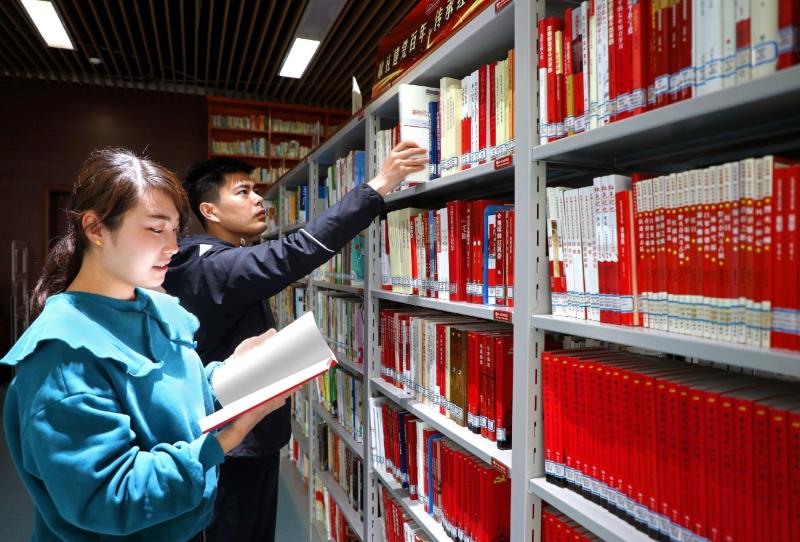4月21日,在許昌市圖書館“紅書”專架旁,市民在閱覽圖書。近日,為慶祝中國共產黨成立100周年,迎接第26個“世界讀書日”,市圖書館設立紅色初心、踐行百年——獻禮建黨百年“紅書”專架,集中展示館藏有關黨史、黨建的期刊和文獻,引導市民知黨史、感黨恩、立遠志,發(fā)揚優(yōu)良革命傳統(tǒng),傳承紅色文化,堅定理想信念。 本報記者 譚宜姝 攝
