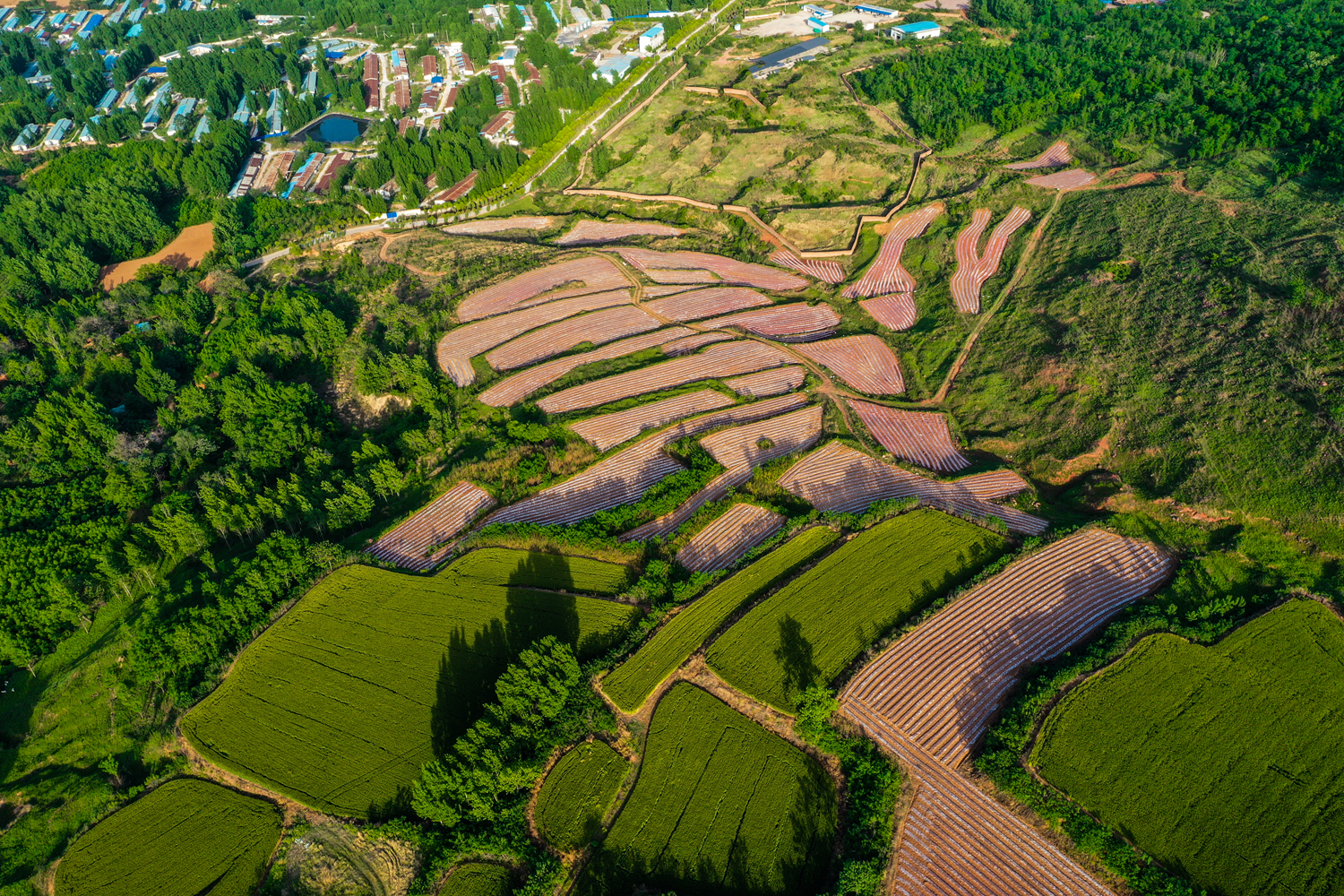 5月17日,河南省許昌市襄城、禹州煙區(qū),全部煙葉已經(jīng)移栽完畢,俯瞰煙區(qū)大地,風景秀麗、景色壯觀,覆膜后的煙田在田野大地勾勒出一幅幅美麗的鄉(xiāng)村圖景。近年來,煙葉作為當?shù)刂饕?jīng)濟作物之一,在帶動就業(yè)、助農(nóng)增收、脫貧攻堅、鄉(xiāng)村振興等方面發(fā)揮了重要作用。