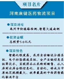 位于禹州市軒轅路西側(cè)、智慧大道南側(cè)的河南康健醫(yī)藥物流項(xiàng)目——河南康健醫(yī)藥藥材股份有限公司現(xiàn)代醫(yī)藥物流中心,建成投運(yùn)后可同時(shí)滿足30萬箱、10800種藥品的儲存、配送,運(yùn)營成本比同行業(yè)低50%,年配送額將達(dá)30億元,利稅將達(dá)4500萬元,將成為中原地區(qū)規(guī)模最大、效率最高的中西藥智能化物流平臺,對做大做強(qiáng)本土企業(yè)、推動(dòng)禹州乃至許昌醫(yī)藥流通產(chǎn)業(yè)高質(zhì)量發(fā)展具有示范性引領(lǐng)作用。
