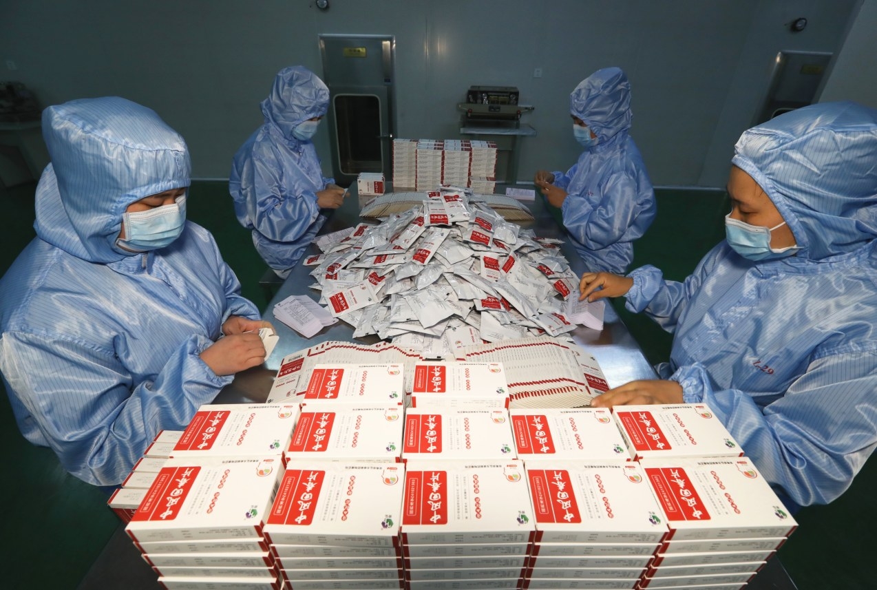 6月3日,在位于禹州市的河南潤弘本草制藥有限公司,工人在分裝藥品。 本報(bào)記者 牛書培 攝