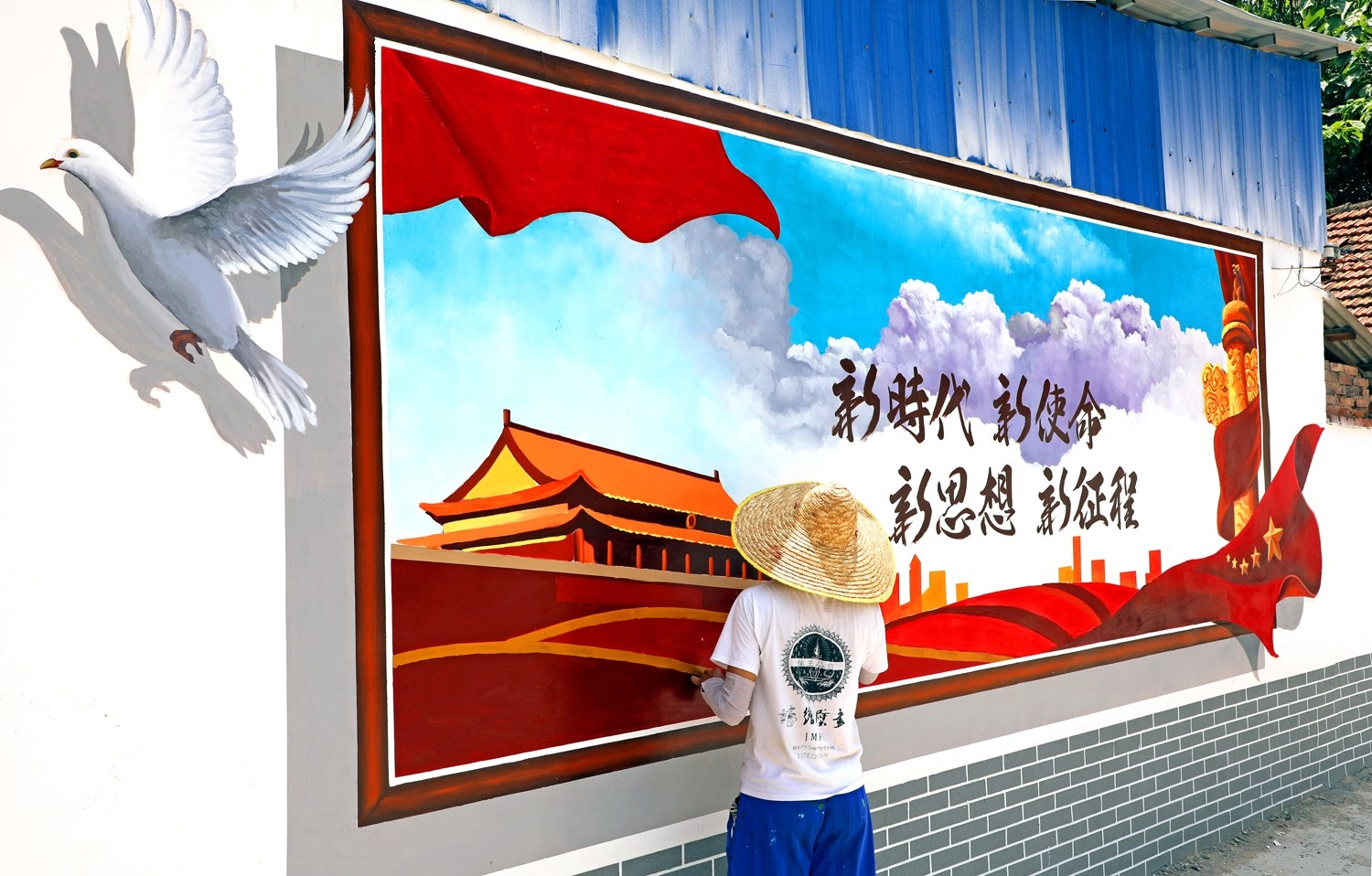7月12日,墻體彩繪師正在市區(qū)倉(cāng)庫路六一巷進(jìn)行3D墻繪。