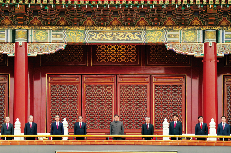2021年7月1日,慶祝中國(guó)共產(chǎn)黨成立100周年大會(huì)在北京天安門廣場(chǎng)隆重舉行。習(xí)近平、李克強(qiáng)、栗戰(zhàn)書、汪洋、王滬寧、趙樂際、韓正、王岐山、胡錦濤等出席大會(huì)?!⌒氯A社記者 殷博古/攝