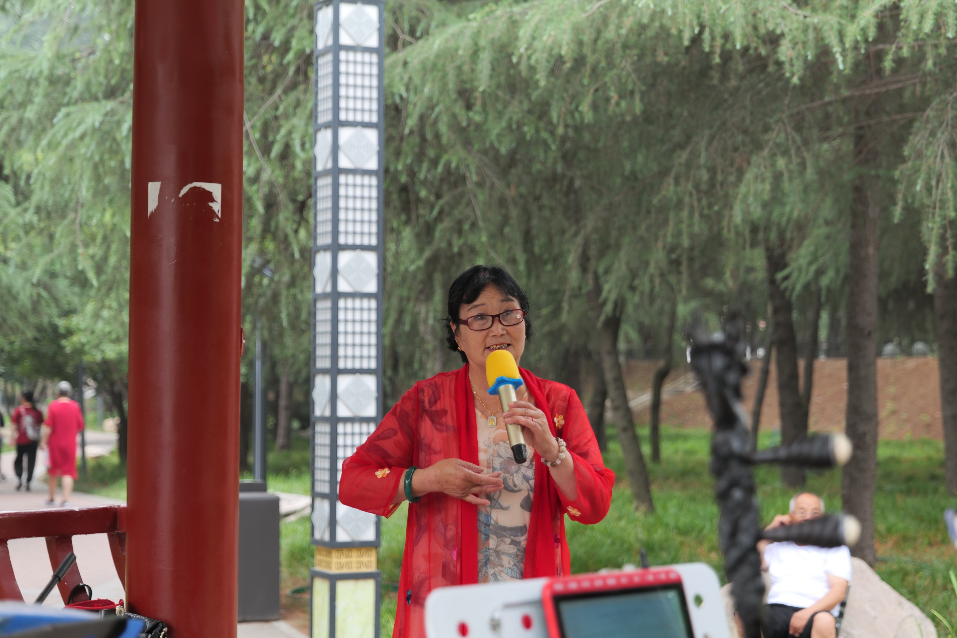 胥風(fēng)梅落落大方地接過麥克風(fēng),報(bào)了一個(gè)選段。伴奏響起,胥風(fēng)梅的聲音飄蕩在廣場里。