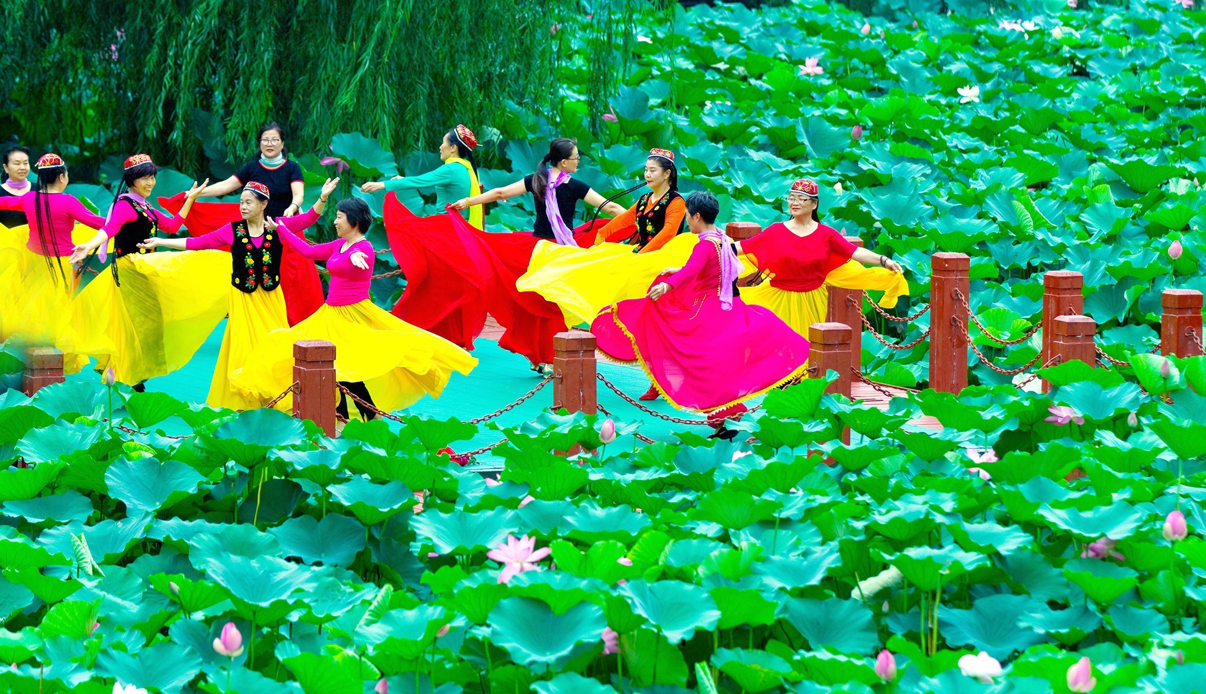 盛夏時節(jié),在許昌市區(qū)的河道內(nèi),荷花亭亭玉立,爭奇斗艷,岸邊柳樹上蟬鳴悠悠,水中荷葉之下蛙聲陣陣,盡顯都市荷塘之美。