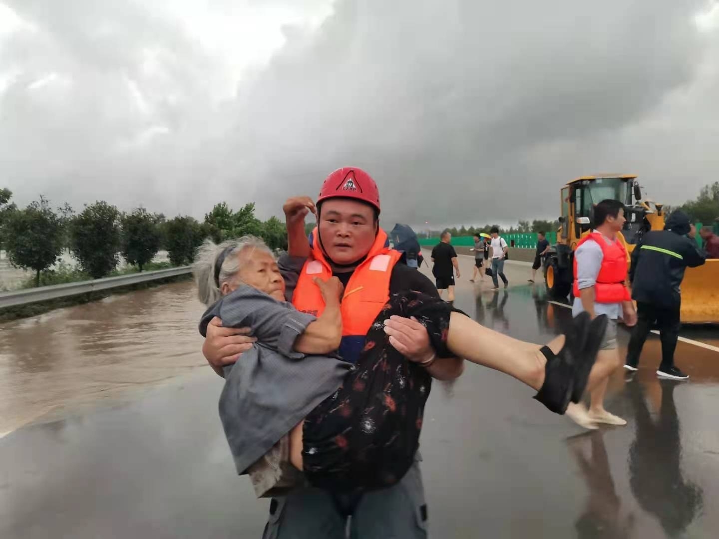 7月21日,長葛市107國道雙洎河橋,救援人員救出一位老人。黃增瑞 攝