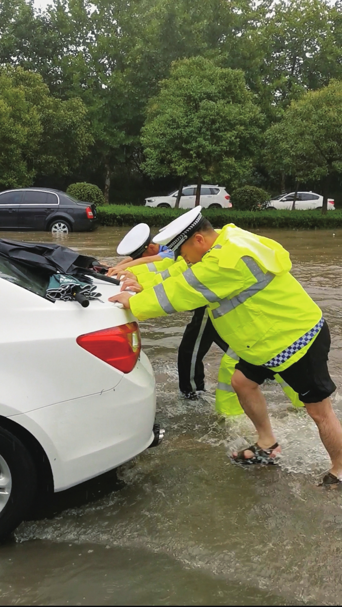 http://m.shqianxie.com/pic/202107/22/98d2f5fa-6e60-4442-918d-d1f6ee0c1f7a5cd97916-6290-4108-8fbd-78935cd90af6.jpg 7月20日,在市區(qū)魏武大道和東苑街交會處,交警合力推車,幫助車主脫困。 陳晨 攝 http://m.shqianxie.com/pic/202107/22/98d2f5fa-6e60-4442-918d-d1f6ee0c1f7a5cd97916-6290-4108-8fbd-78935cd90af6.jpg