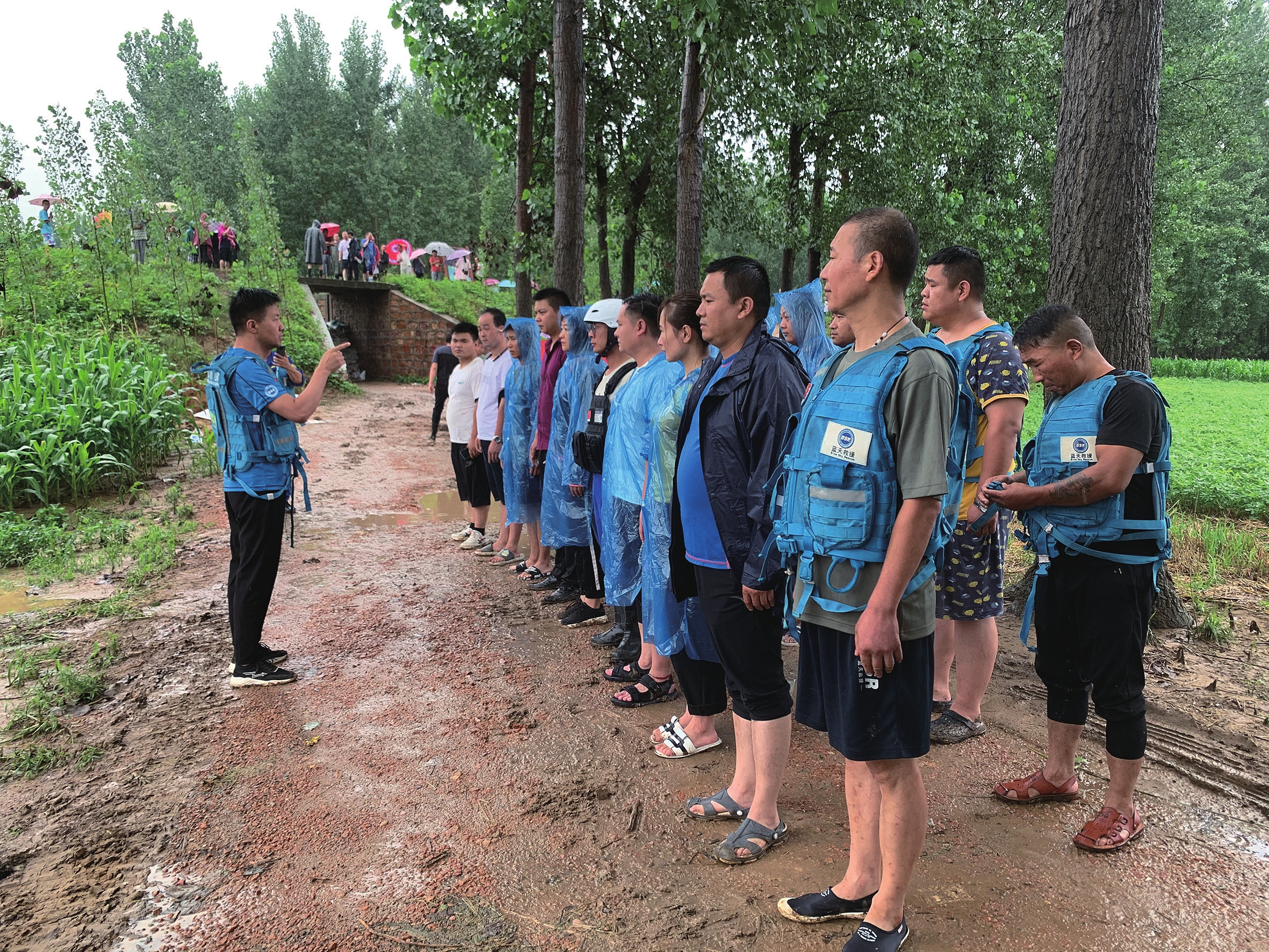 7月21日早上6時,長葛市藍天救援隊整隊前往佛耳崗水庫轉移受災群眾。 本報簽約攝影師 李喜民 攝