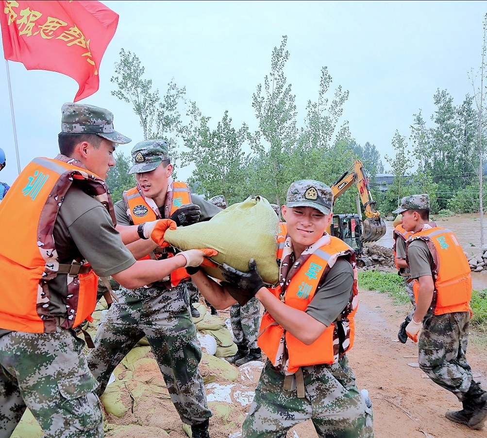 暴雨傾盆、洪水肆虐、大堤決口、農(nóng)田被淹、橋梁沖段、群眾受災(zāi)……危難時(shí)刻,駐許部隊(duì)以及許昌武警支隊(duì)的官兵,迅速趕到災(zāi)區(qū),暴雨中勇敢逆行,洪水中救助群眾,搶堵潰壩早把生死置之度外;一袋袋沙土、一趟趟來(lái)回,沒(méi)人叫苦叫累,輕傷更是不下火線。沒(méi)有熱水、熱飯,實(shí)在困了就地一躺。洪水不退,戰(zhàn)斗繼續(xù),人在堤在,直至勝利。