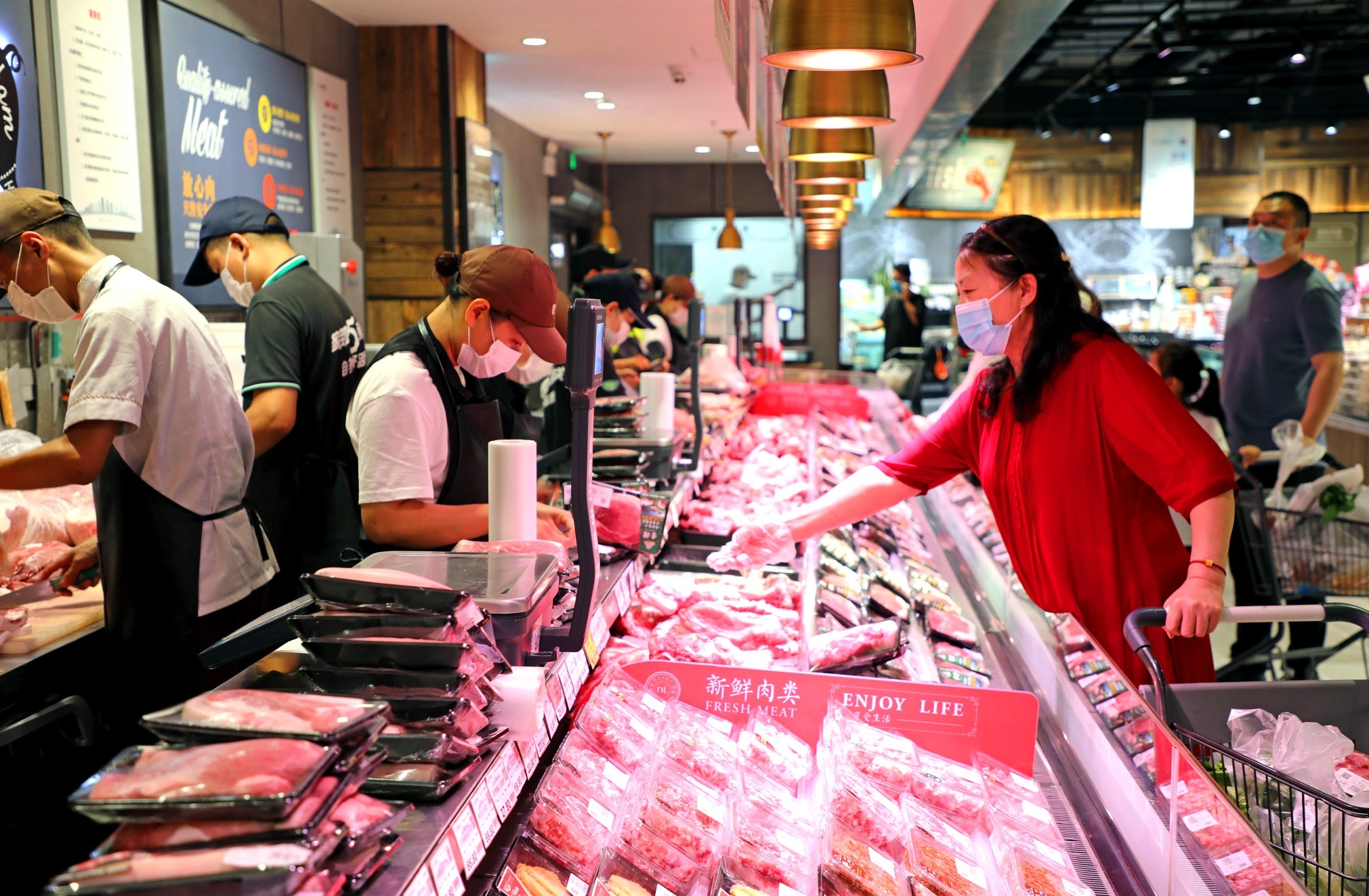 連日來,部分許昌市民擔(dān)心“菜籃子”“米袋子”,8月3日,記者探訪了解到,許昌市區(qū)各大主力超市門店備貨充足,供應(yīng)鏈全鏈條暢通……市民不必囤積生活必需品,完全可以從容購物消費(fèi),以免造成浪費(fèi)。圖為市民正在魏文路胖東來云鼎店超市內(nèi)購買鮮肉。 本報(bào)記者 譚宜姝 攝