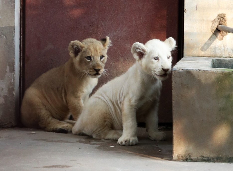 西湖公園喜添雙胞胎“萌獅”