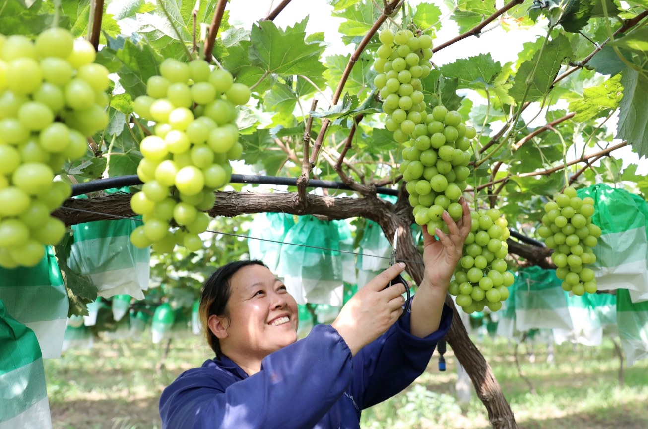 9月14日,建安區(qū)蘇橋鎮(zhèn)的博強(qiáng)農(nóng)業(yè)合作社,技術(shù)人員正在管理葡萄。該合作社通過(guò)引進(jìn)種植陽(yáng)光玫瑰葡萄新品種,實(shí)現(xiàn)良好經(jīng)濟(jì)效益,助力產(chǎn)業(yè)提質(zhì)增效。 本報(bào)記者 喬利峰 攝