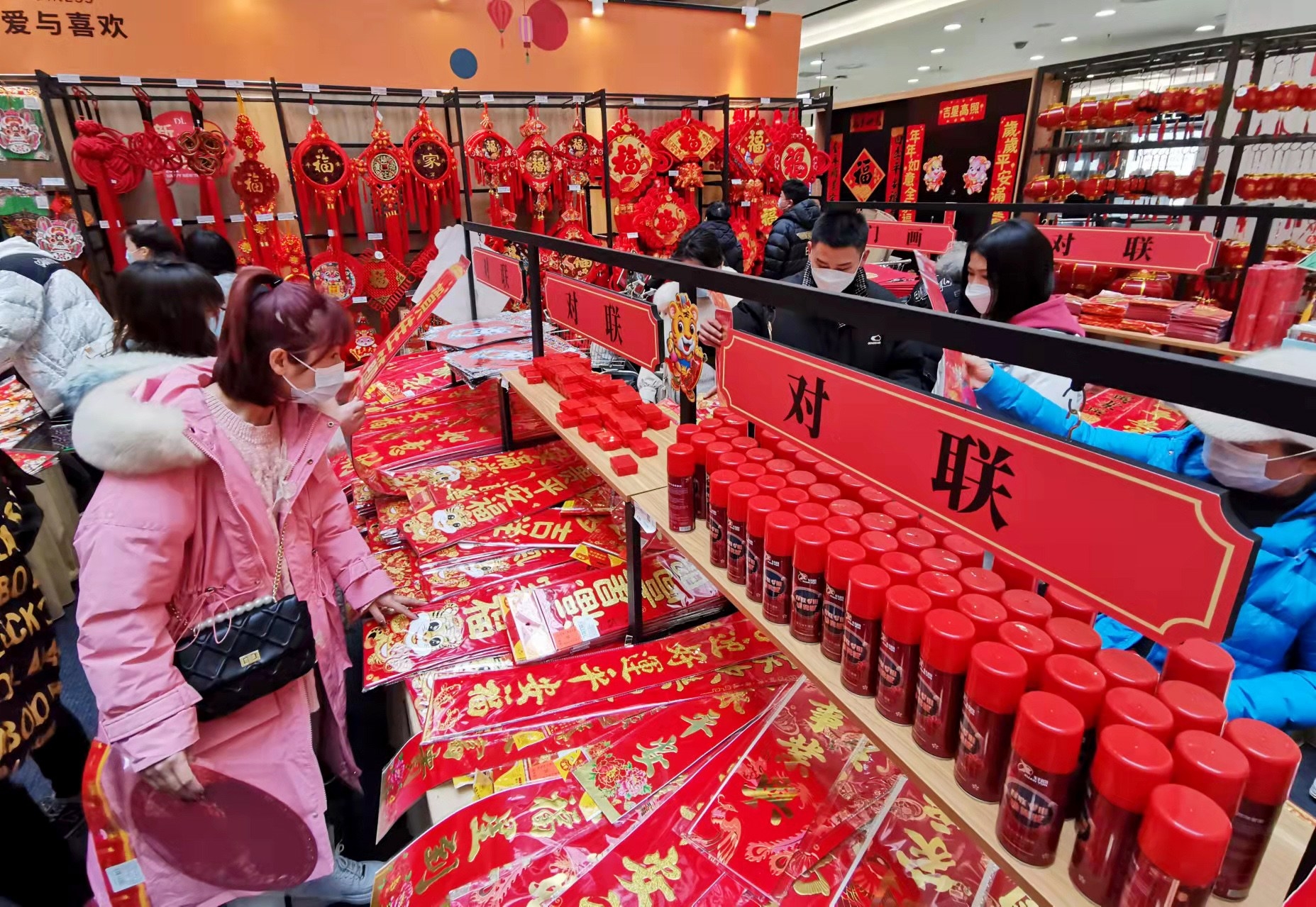 1月27日,市區(qū)一商場,市民在購買喜慶的對(duì)聯(lián)。隨著農(nóng)歷新年的臨近,商場內(nèi)火紅的對(duì)聯(lián)、中國結(jié)、窗花等各式各樣的年飾用品琳瑯滿目,處處洋溢著喜氣洋洋的新春氣氛。 記者 喬利峰 攝