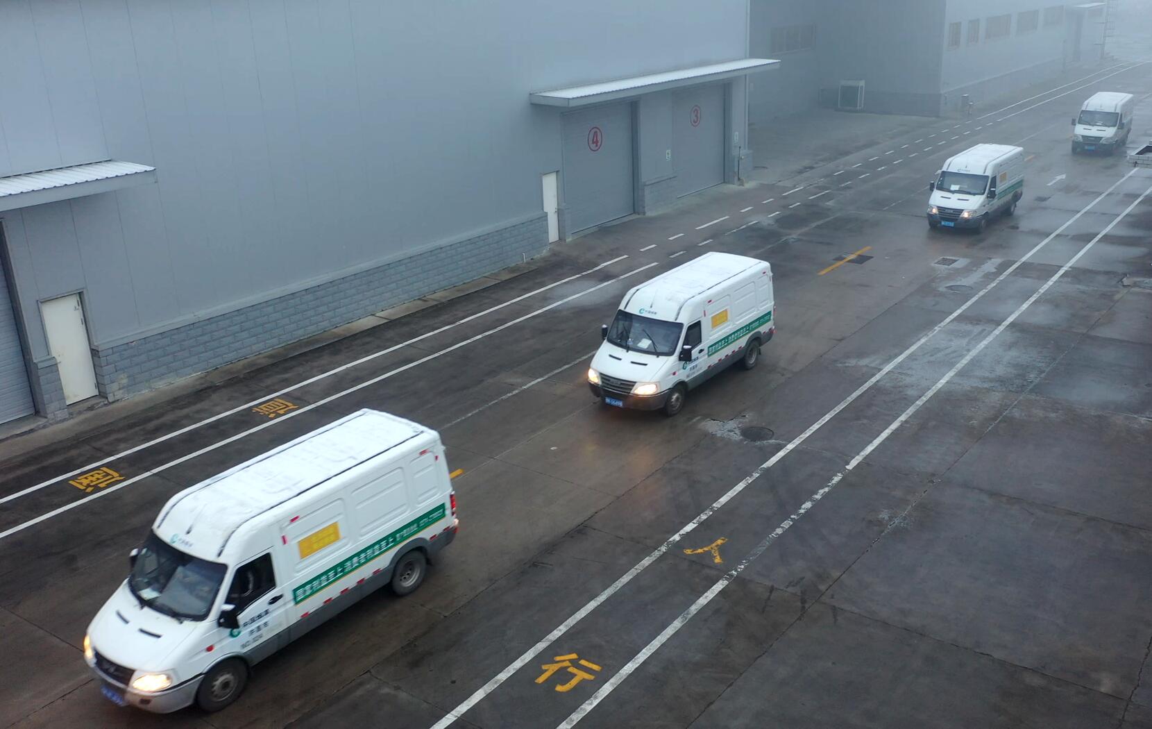 01 2022年1月29日早上7:00,許昌卷煙物流配送中心,奔赴禹州的送貨車(chē)隊(duì)整裝待發(fā)。