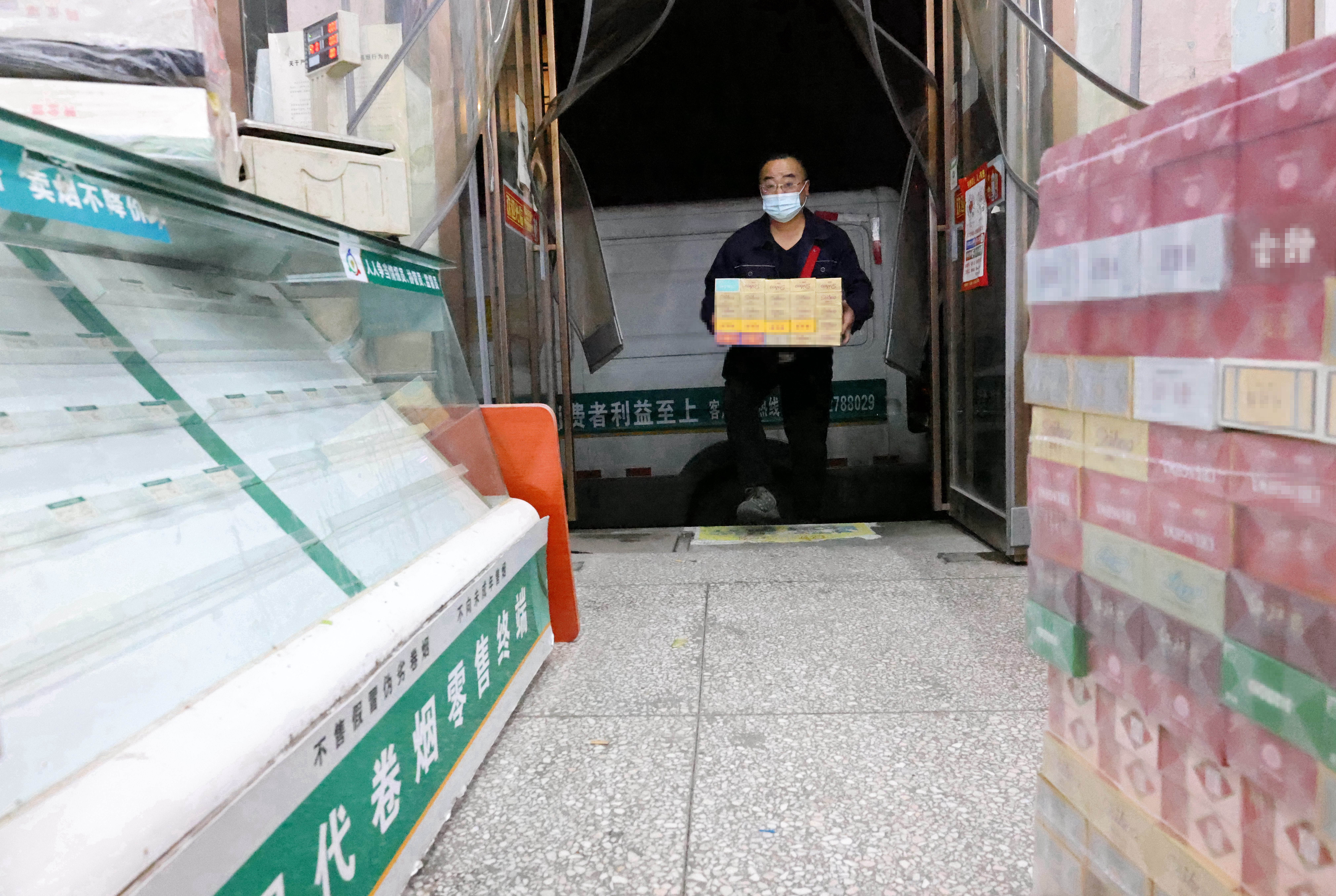 07 客戶鄭曉克訂購(gòu)的卷煙已經(jīng)重新擺滿貨柜,小店重迎生機(jī)。