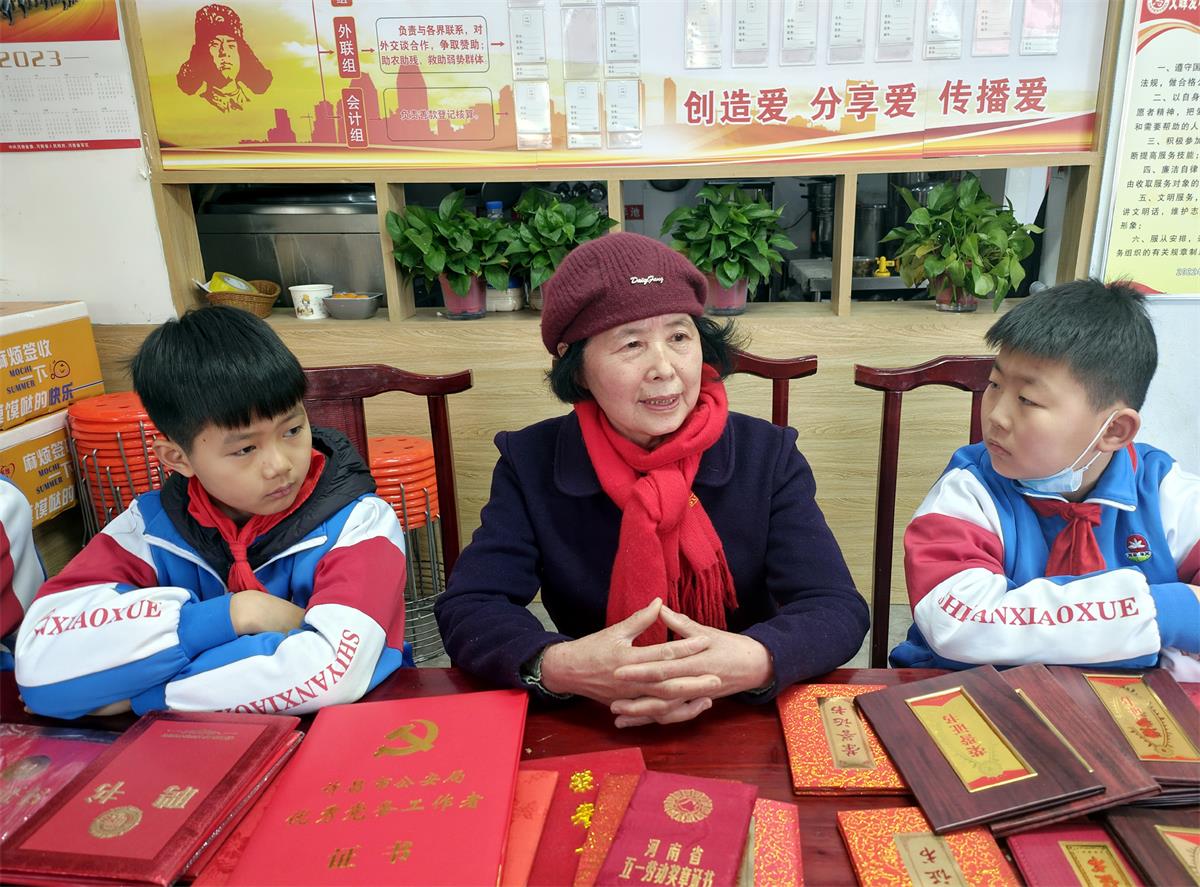 2月26日上午,在市區(qū)文峰社區(qū)愛心粥屋,黃玉棟給小學生講述當年學雷鋒的經(jīng)歷。黃玉棟原是一名公安民警,在職時,先后獲得“河南省學雷鋒標兵”“河南省勞動模范”等榮譽稱號。退休后,她又到市老干部督導團繼續(xù)為城市創(chuàng)建貢獻力量。 記者 黃增瑞 攝
