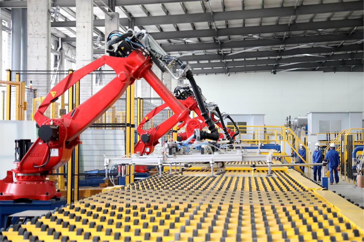 4月6日,位于襄城縣的許昌安彩新能科技有限公司,工業(yè)機(jī)器人在生產(chǎn)線上精細(xì)作業(yè)。該公司把創(chuàng)新作為引領(lǐng)發(fā)展的第一動(dòng)力,深入貫徹河南省“數(shù)字化轉(zhuǎn)型”戰(zhàn)略部署,通過(guò)“生產(chǎn)換線”“機(jī)器換人”“設(shè)備換芯”,解決傳統(tǒng)玻璃企業(yè)核心痛點(diǎn),讓智能制造成為企業(yè)發(fā)展的核心動(dòng)力。 本報(bào)記者 喬利峰 攝