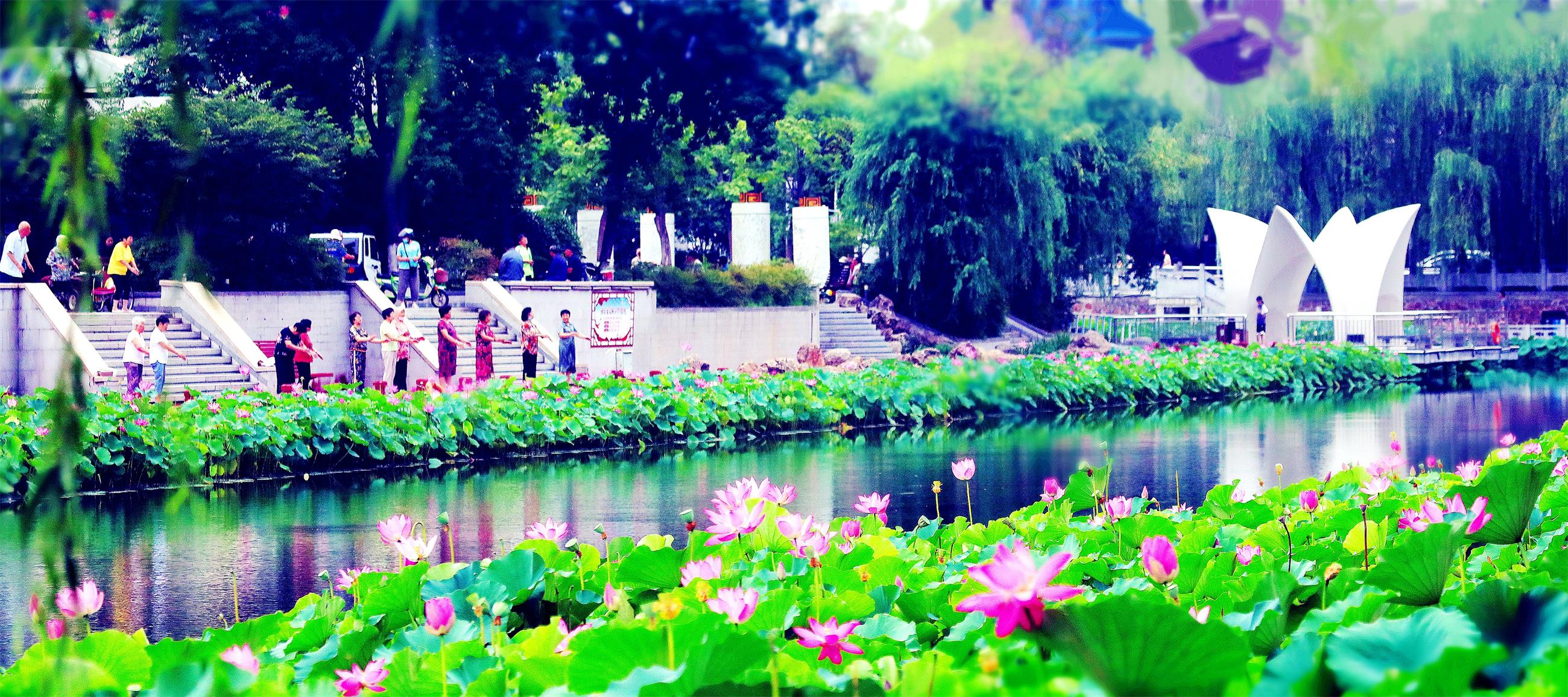6月27日,市民與游客在許昌市護(hù)城河邊賞荷。盛夏時節(jié),自古就有蓮城之稱的許昌市的護(hù)城河、芙蓉湖、學(xué)院河、許扶運(yùn)河內(nèi),荷花綻放,沁人心脾,再現(xiàn)了“滿城荷花半城柳”的美景。 簽約攝影師 高文勝 攝