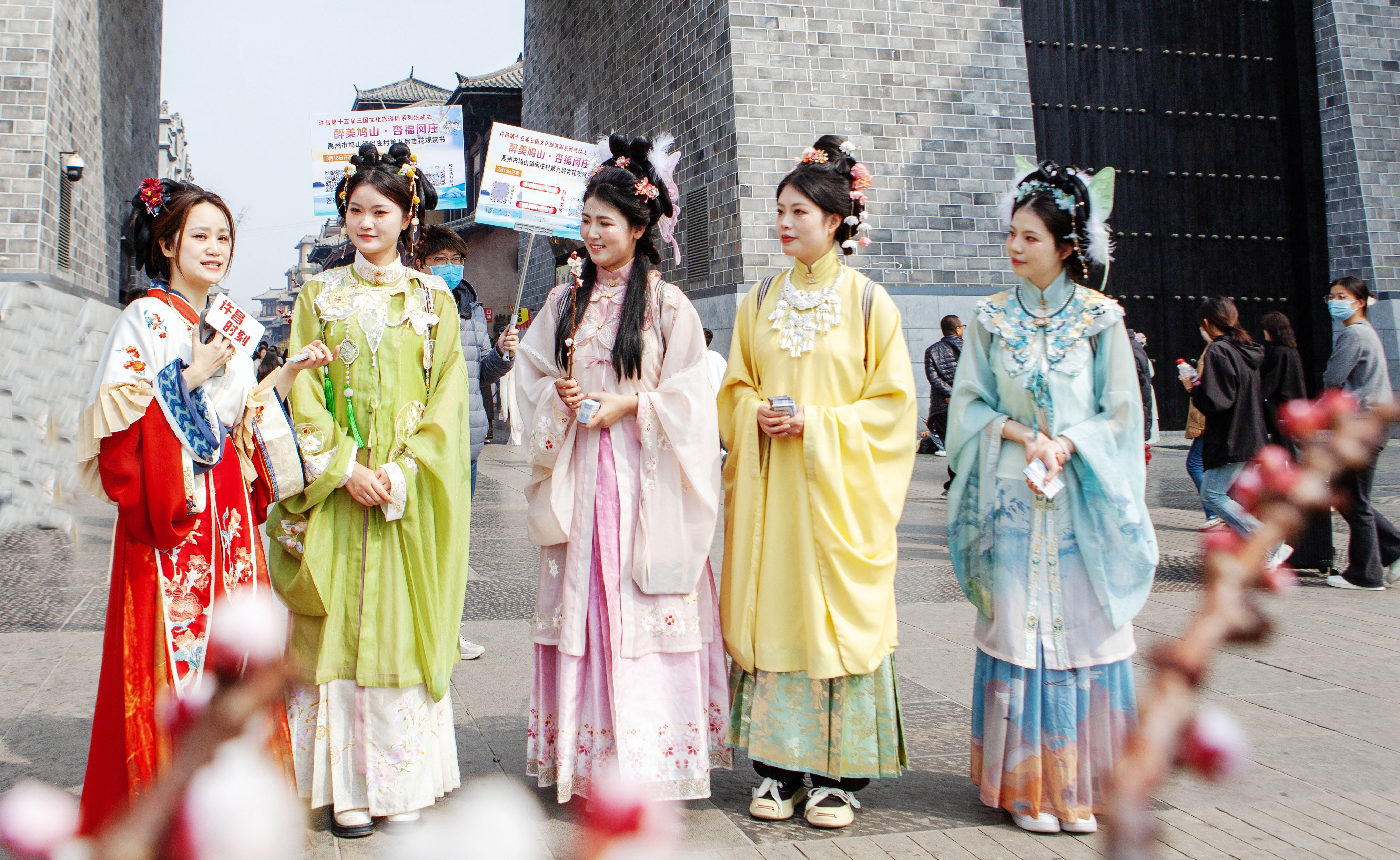 3月16日、17日,在曹魏古城和胖東來天使城廣場,五名身著漢服的“花仙子”背著裝滿杏花、櫻桃花、油菜花的小背簍,為市民和游客送鮮花、送祝福?!斑@是禹州市鳩山鎮(zhèn)閔莊村的杏花,歡迎您來參加閔莊村的杏花節(jié),等杏子成熟了,記得來采摘哦”“襄城縣湛北鄉(xiāng)北姚社區(qū)的櫻桃花開了,送您一枝櫻桃花,歡迎您來賞花、采摘櫻桃”……美麗的“花仙子”在送鮮花的同時,還向游客發(fā)放宣傳卡片?,F(xiàn)場很熱鬧,很多市民和游客都欣然接受了“花仙子”的邀約。