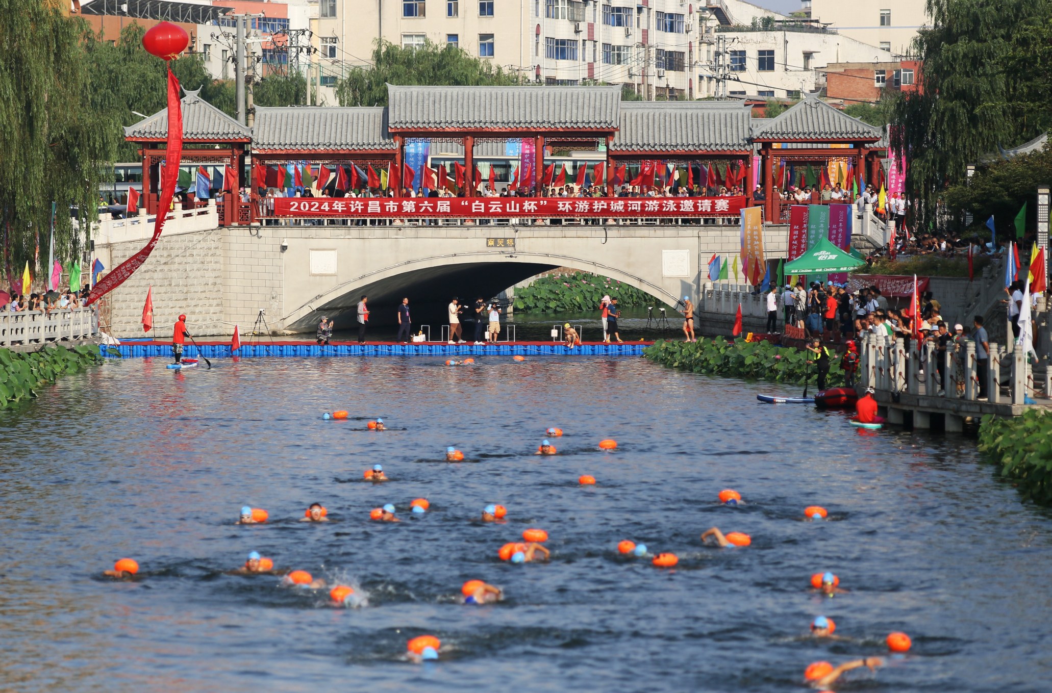 6月10日,我市舉辦第六屆“白云山杯”環(huán)游護(hù)城河游泳邀請賽。