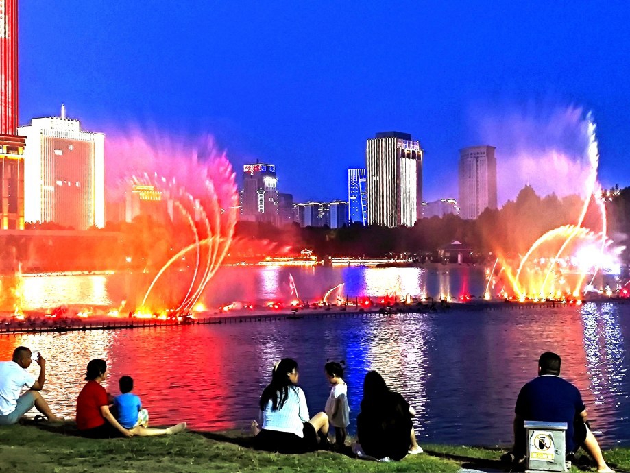 “星繁愁晝熱,露重覺荷香?!币鼓幌碌淖o(hù)城河流光溢彩,游船、荷花、拱橋……沿河漫步,清爽的荷風(fēng)撲面而來,白天的燥熱一掃而光。市區(qū)的公園、游園里,廣場舞愛好者聚集在一起,隨著音樂翩翩起舞,城市的夜晚也跟著律動起來。