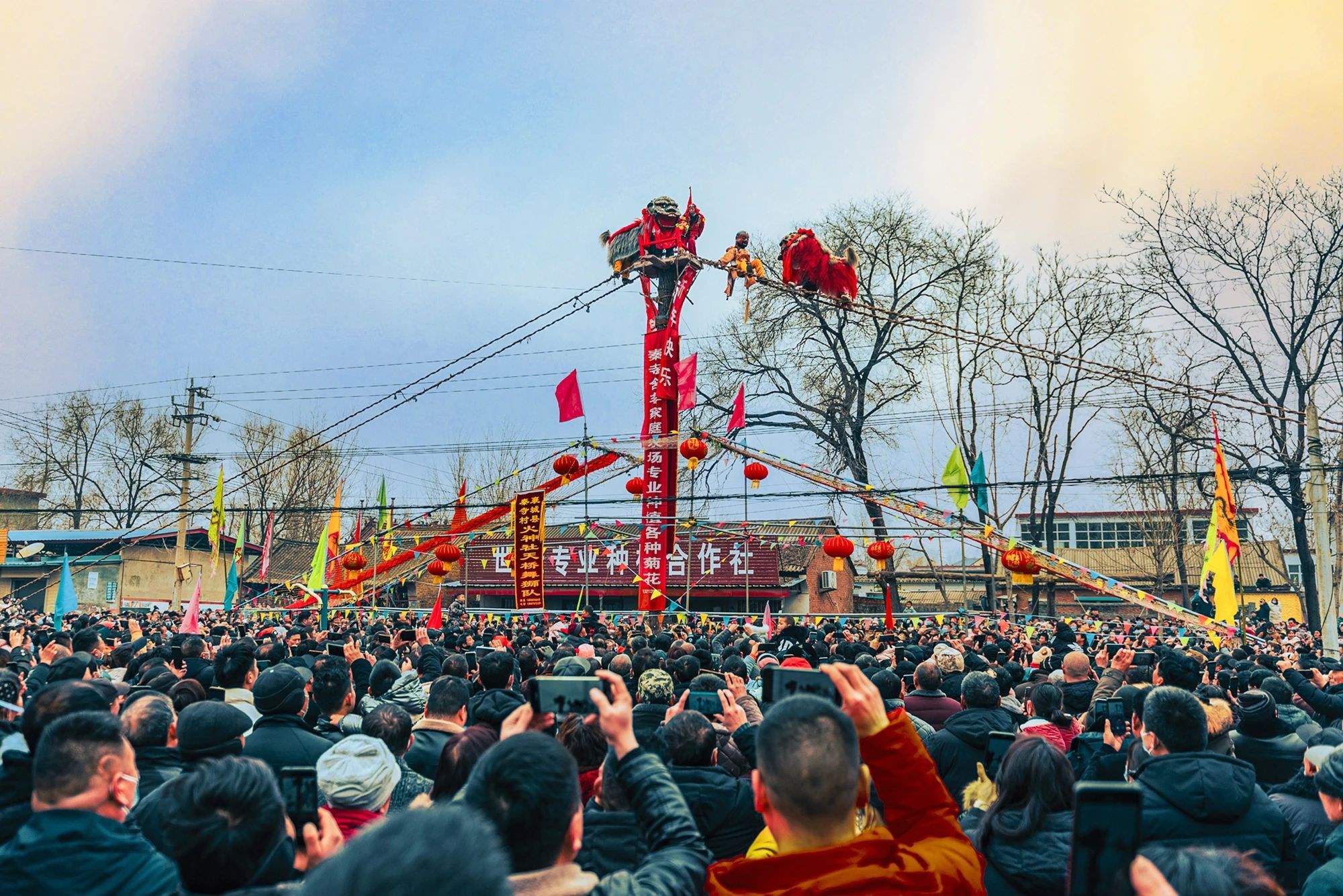 然而,由于獅子爬天橋表演難度大,參與人數(shù)多,危險系數(shù)高,曾一度中斷。近年來,隨著傳統(tǒng)文化的崛起,秦寺村的獅子爬天橋項目又重新被人拾起,并隨著時代的發(fā)展在不斷創(chuàng)新。
