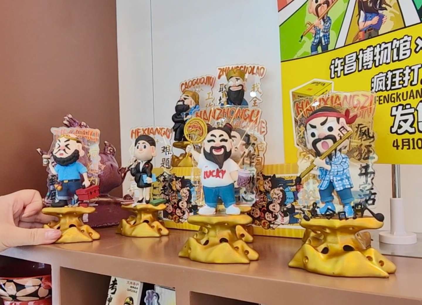 許昌市博物館陳列部副主任趙瓊說,這是他們與中原科技學院共同創(chuàng)作的作品。該作品以館藏明代銅八仙人物IP和神話故事為設(shè)計元素,結(jié)合現(xiàn)代職場打工人的形象特征,提煉出8種具有象征意義的職場人形象,在保留文物原有肢體動作和頭部特征的基礎(chǔ)上,將銅八仙的服飾替換成打工人服裝,以此傳達“瘋狂打工人”的主題,表達職場人在高壓環(huán)境下的各種情緒。