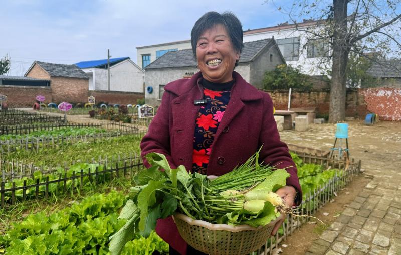 正說(shuō)著,解月亮摘下一把蒜苗,裝滿菜籃:“今天中午吃撈面條,自己種的菜,吃著就是香!”他的小菜園旁,“德孝園”“初心園”等主題游園相繼建成,小菜園與周邊景觀相映成趣。