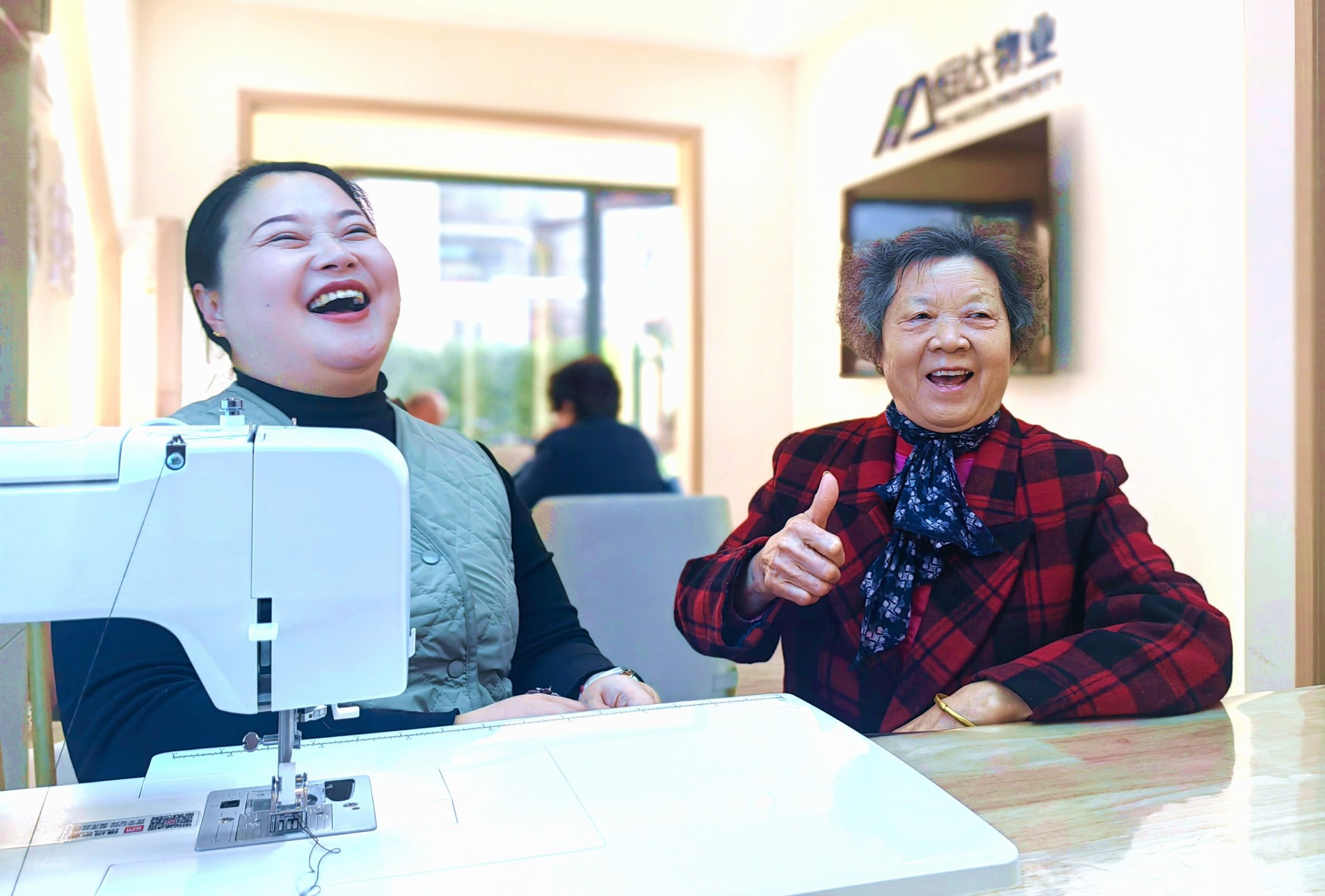 77歲的居民焦翠榮正專注地為一件脫線的毛衣做“手術”。她笑道:“以前用的是老式縫紉機,這個是電動的新玩意,用得不太熟練,好在有物業(yè)的小妮兒幫忙?!?/p>