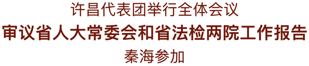 1月27日,出席河南省十四屆人大四次會議的許昌代表團代表,認真審議省人大常委會工作報告、省高級人民法院工作報告、省人民檢察院工作報告,繼續(xù)審查省“十五五”規(guī)劃綱要草案,審查計劃報告和草案、預算報告和草案。省高級人民法院黨組書記、代理院長秦海參加審議。
