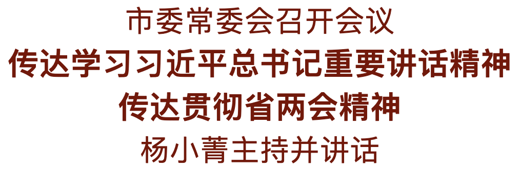1月31日,市委書記楊小菁主持召開市委常委會會議,傳達學(xué)習(xí)習(xí)近平總書記在省部級主要領(lǐng)導(dǎo)干部學(xué)習(xí)貫徹黨的二十屆四中全會精神專題研討班開班式上的重要講話精神,傳達貫徹省十四屆人大四次會議和省政協(xié)十三屆四次會議精神,研究巡視整改、安全穩(wěn)定等工作。