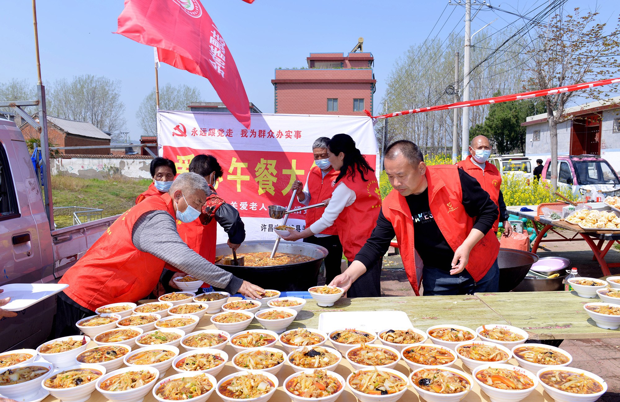 正午時分,長桌整齊排列,老人有序就座。志愿者端上熱氣騰騰的燴菜,松軟的蒸饃、花卷,搭配香甜的面包與新鮮水果,一勺勺飯菜,一聲聲問候,驅(qū)散了春日微涼。老人咀嚼著美味,眉眼間漾起幸福的笑意,暖意從舌尖蔓延至心底。